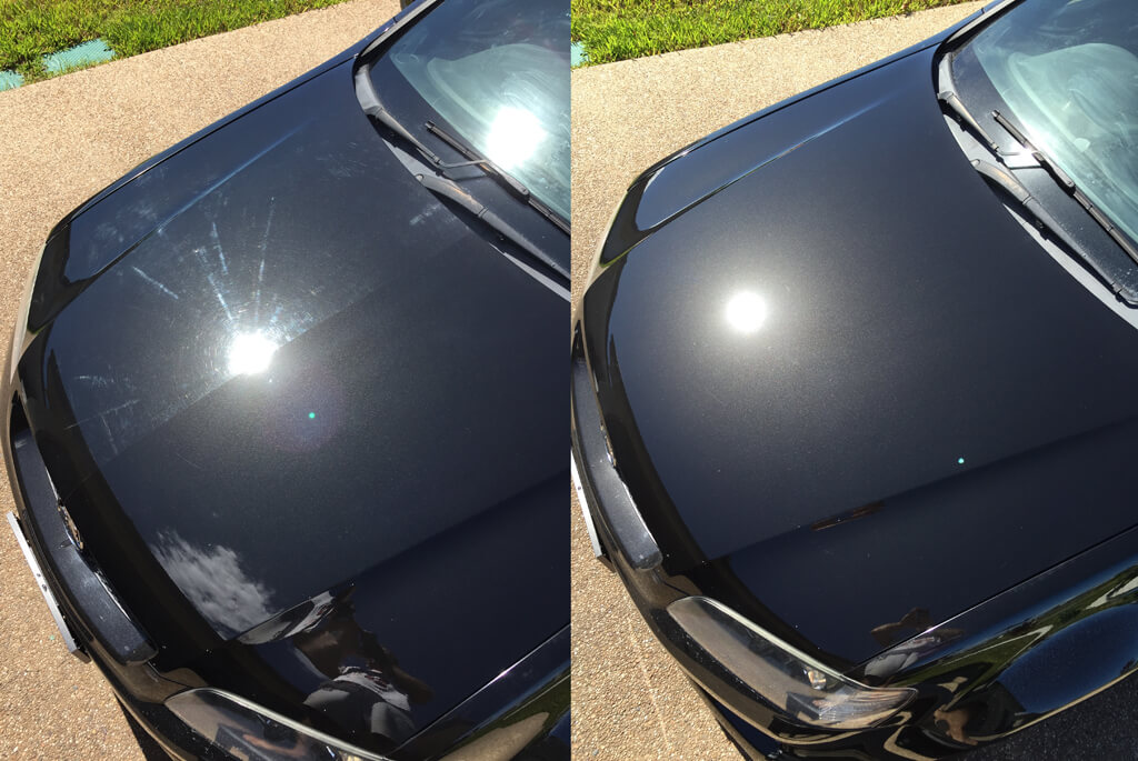 We carefully wash your vehicle, clay-bar the surface to remove contaminants, and then use professional polishing machines with multiple stages of compounds to level out imperfections.